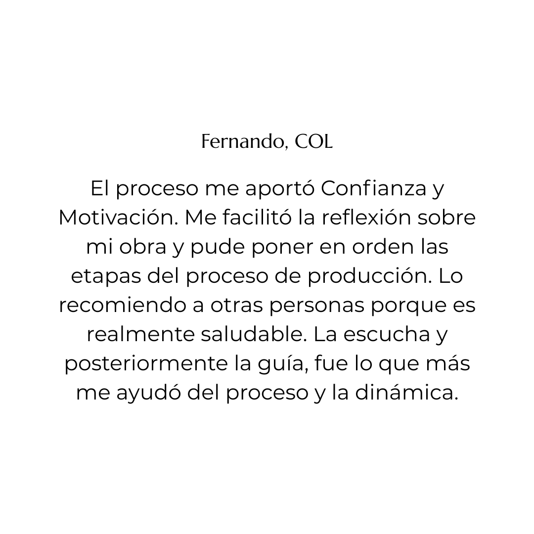 Así surge el Consultorio Artístico: un espacio de acompañamiento, atención y reflexión para artistas y creadoras en distintos momentos de su camino. Trabajamos tanto con los procesos como con las preguntas, bloqueos o transiciones que los atraviesan, para recuperar claridad y fortalecer una práctica viva, situada y con sentido.