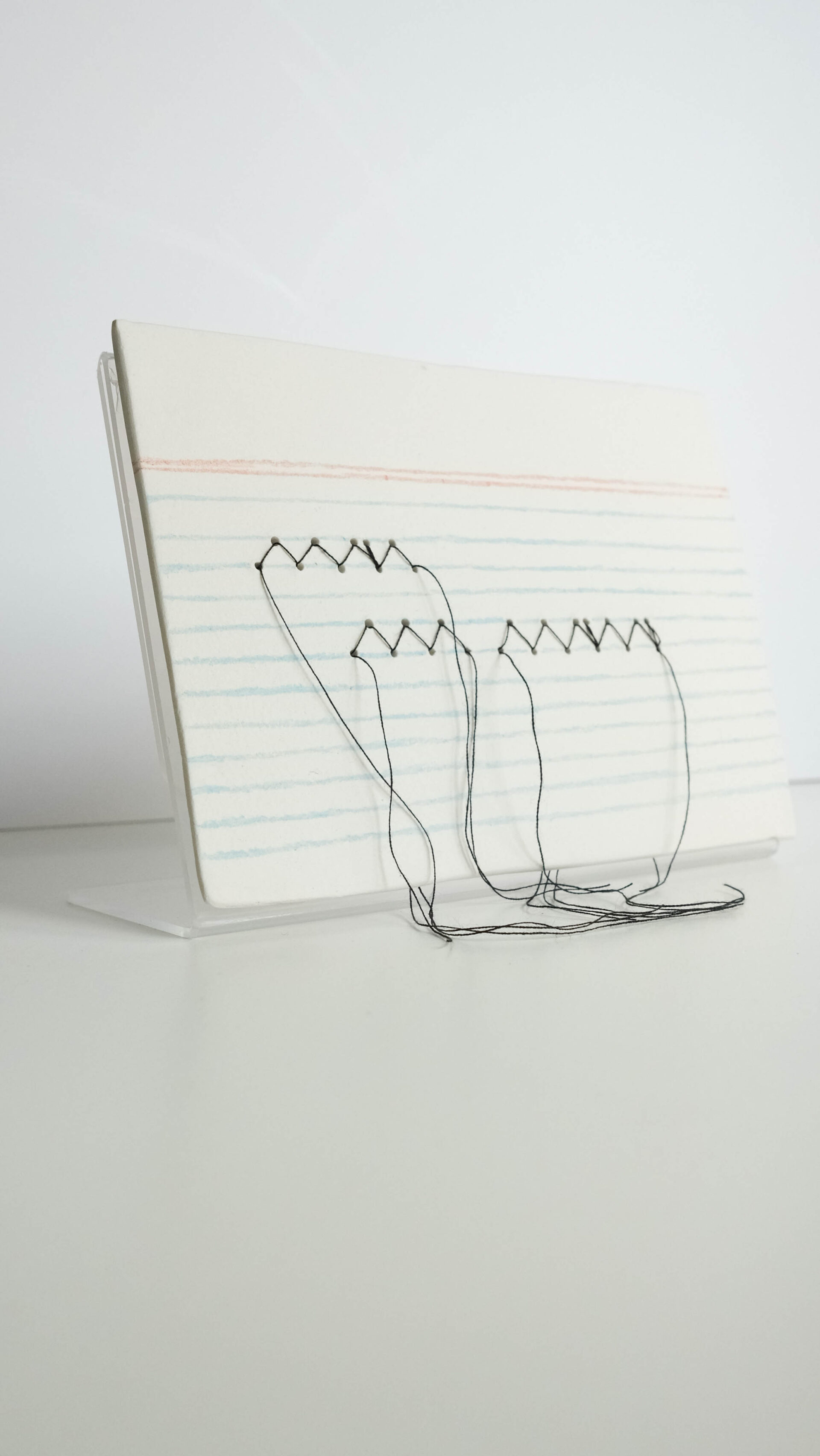 Porcelana de papel intervenida en costura a máquina